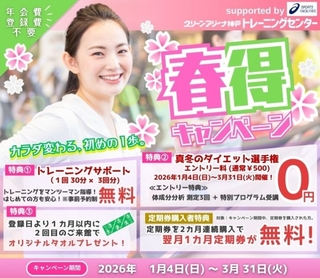 グリーンアリーナ神戸トレーニングセンター受付へ直接ご来館、またはお電話078-796-1126にて『春得キャンペーン』とお伝えいただき、初めてサポート(初回講習)をお申込みください!