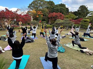 須磨離宮公園の綺麗な紅葉と芝生が広がる静かな庭園でのヨガで、ココロもカラダもリラックス♪